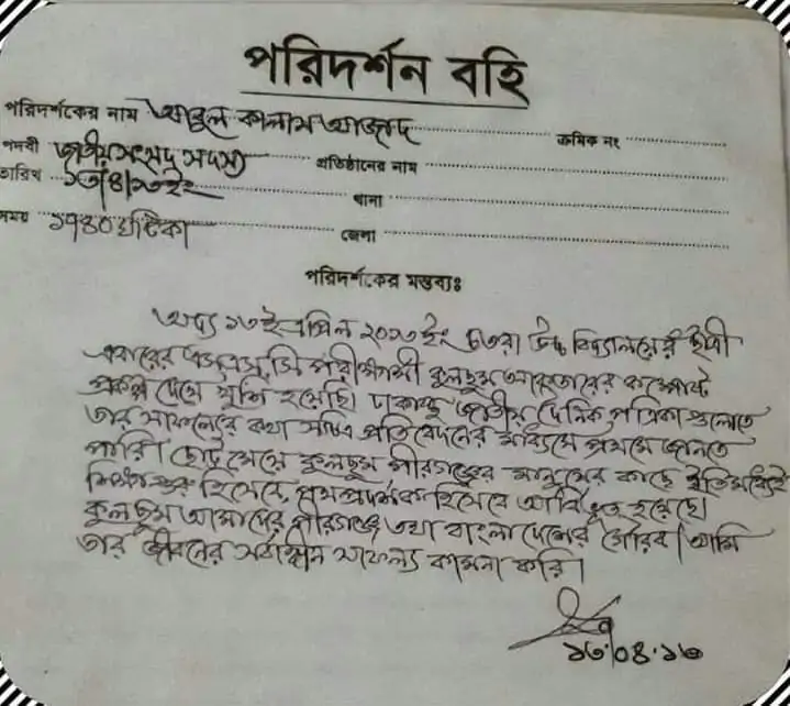অদ্য ১৩ই এপ্রিল ২০১৩ ইং চতরা উচ্চ বিদ্যালয়ের ছাত্রী এবারের এস.এস.সি পরীক্ষার্থী কুলসুম আক্তারের কম্পোস্ট প্রকল্প দেখে খুশি হয়েছি। ঢাকাস্থ জাতীয় দৈনিক পত্রিকা গুলোতে তার সাফল্যের কথা সচিত্র প্রতিবেদনের মাধ্যমে প্রথমে জানতে পারি। ছোট মেয়ে কুলসুম পীরগঞ্জের মানুষের কাছে ইতিমধ্যেই শিক্ষাগুরু হিসেবে পথপ্রদর্শক অভিভূত হয়েছে। কুলসুম আমাদের পীরগঞ্জ তথা বাংলাদেশের গৌরব। আমি তার জীবনের সর্বাঙ্গীন সফল কামনা করি।